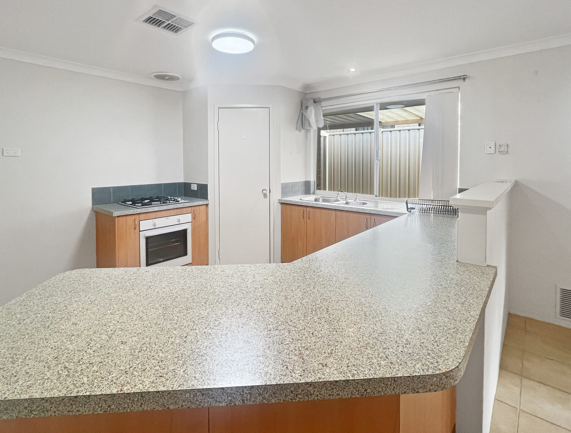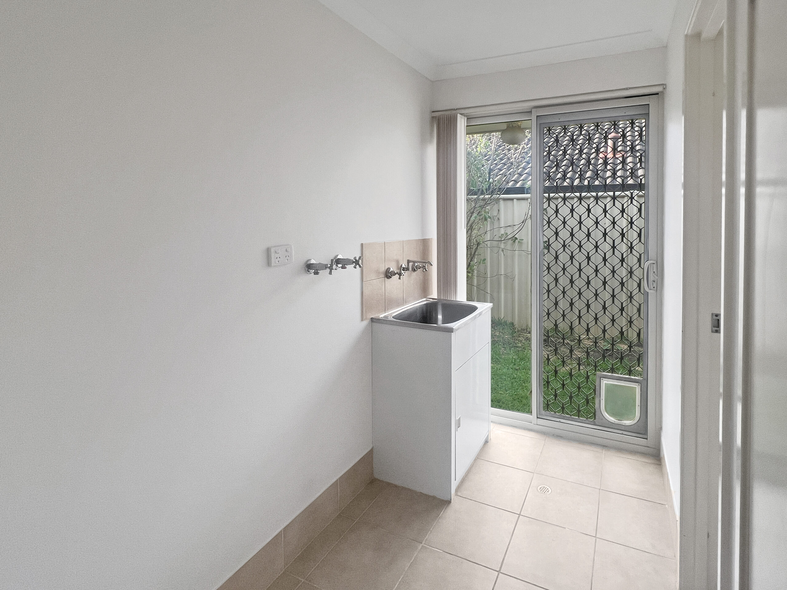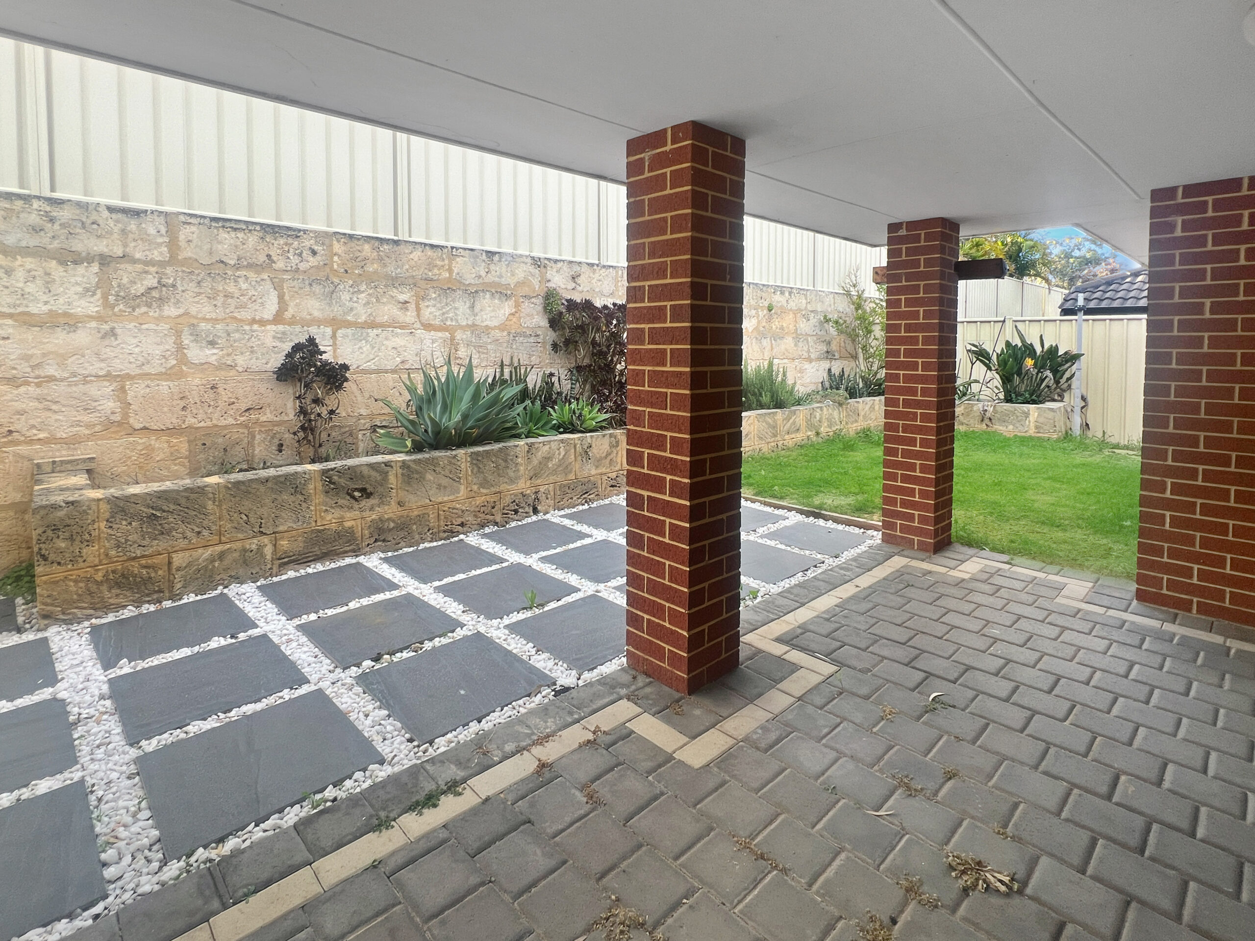A fully enclosed backyard with easy-care gardens, ideal for kids and pets to play safely