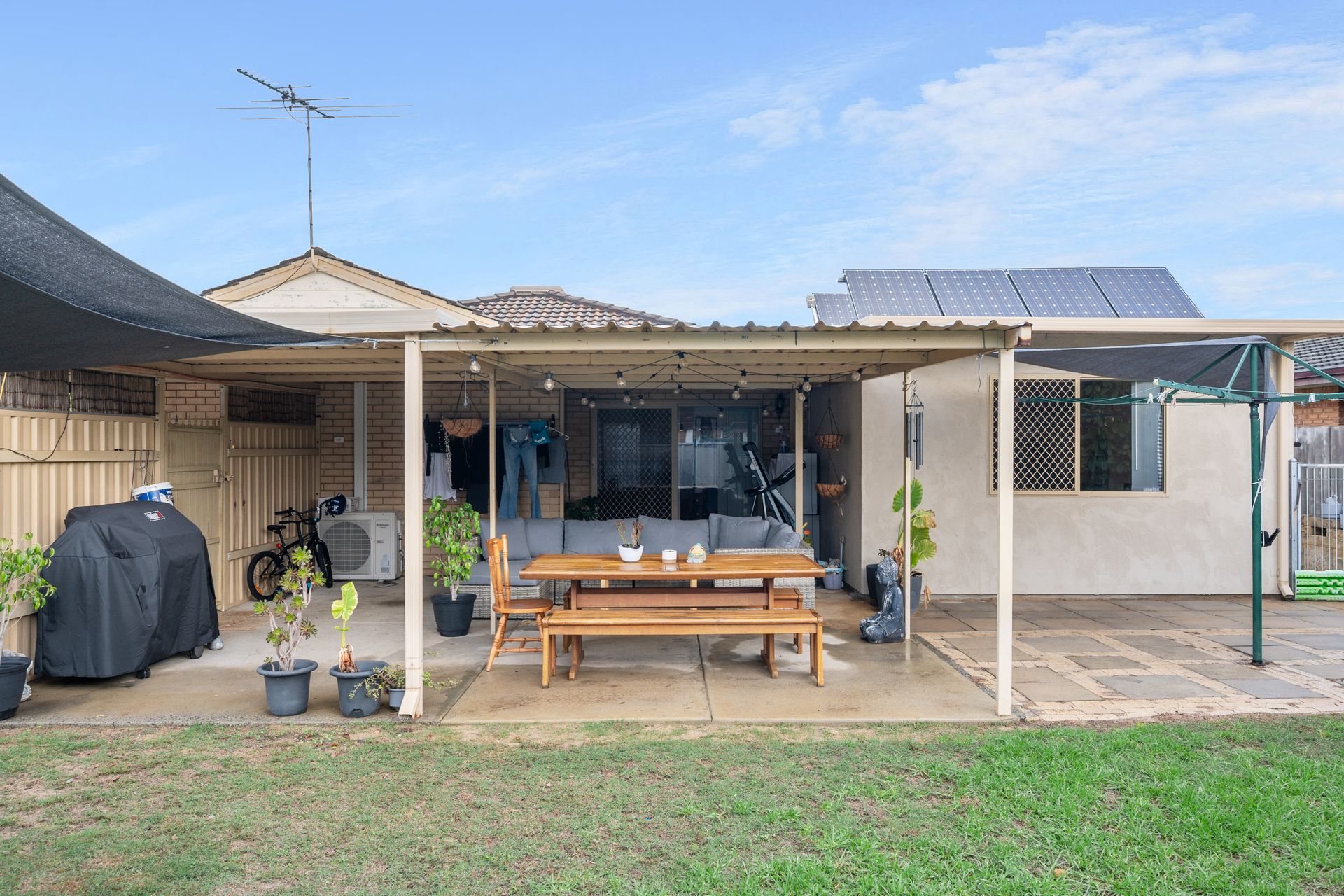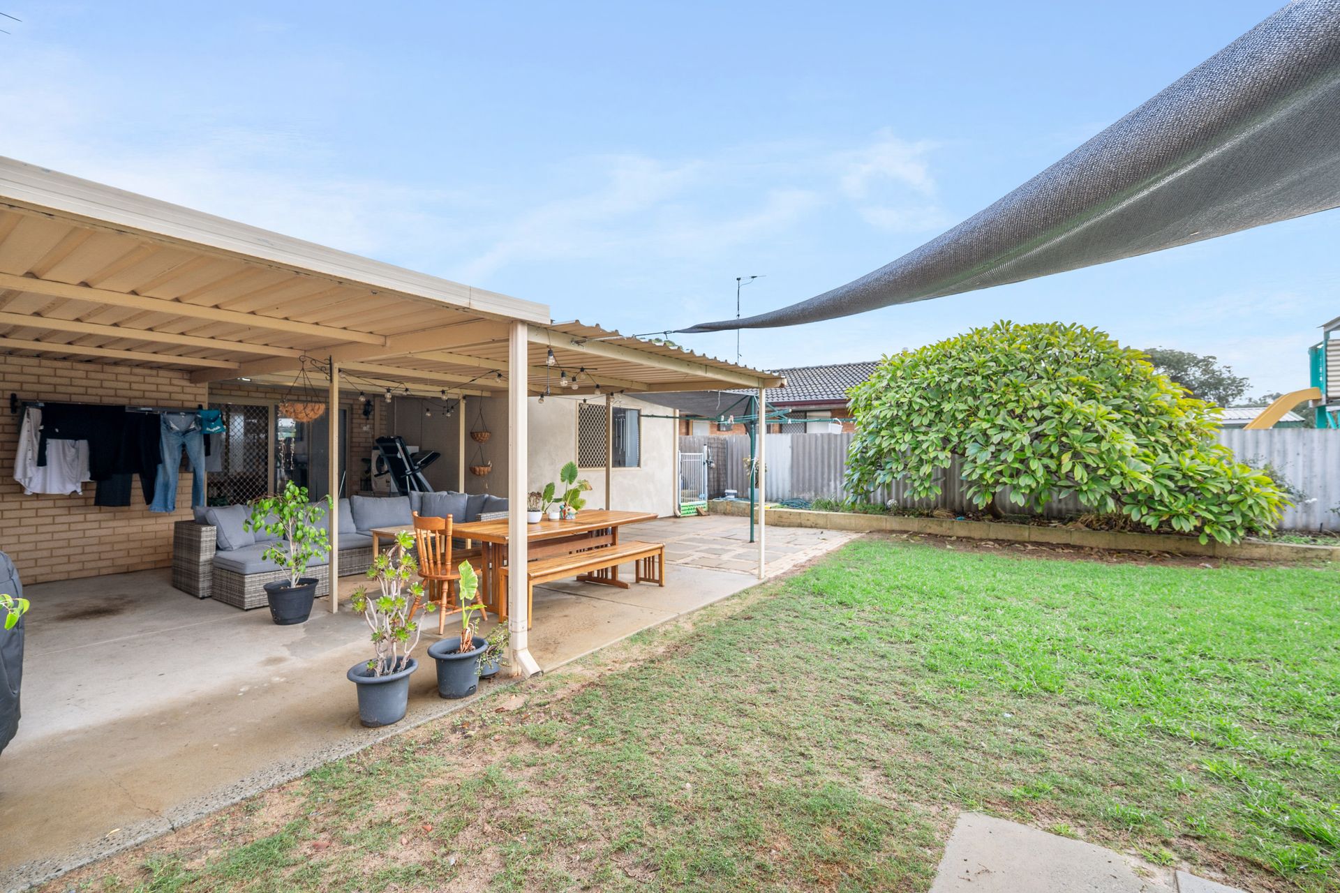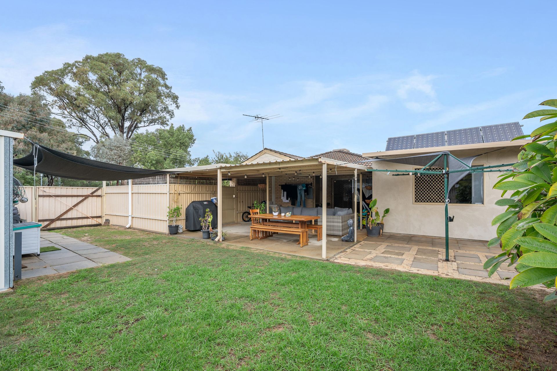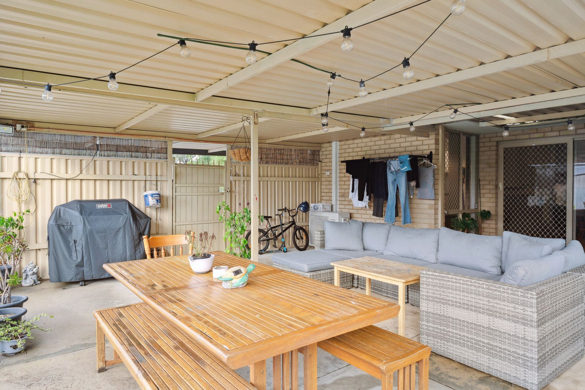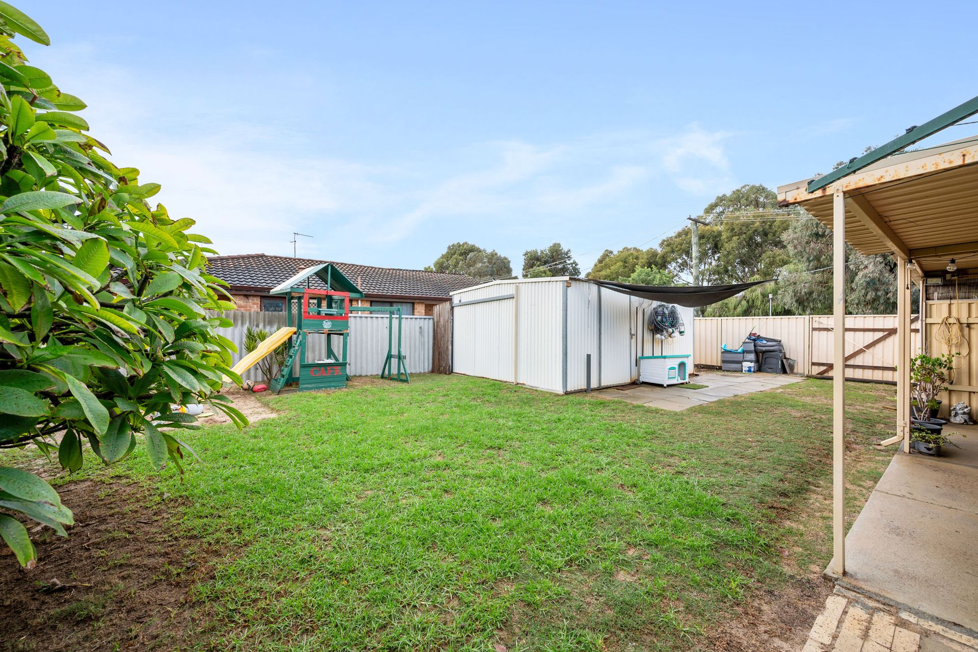 Outdoors, a double carport with a closed gate at the rear provides peace of mind, while side access gates offer easy entry to the backyard. A workshop is perfect for storage or hobbies, and the fully secured yard makes it an excellent space for children or pets to play safely.
