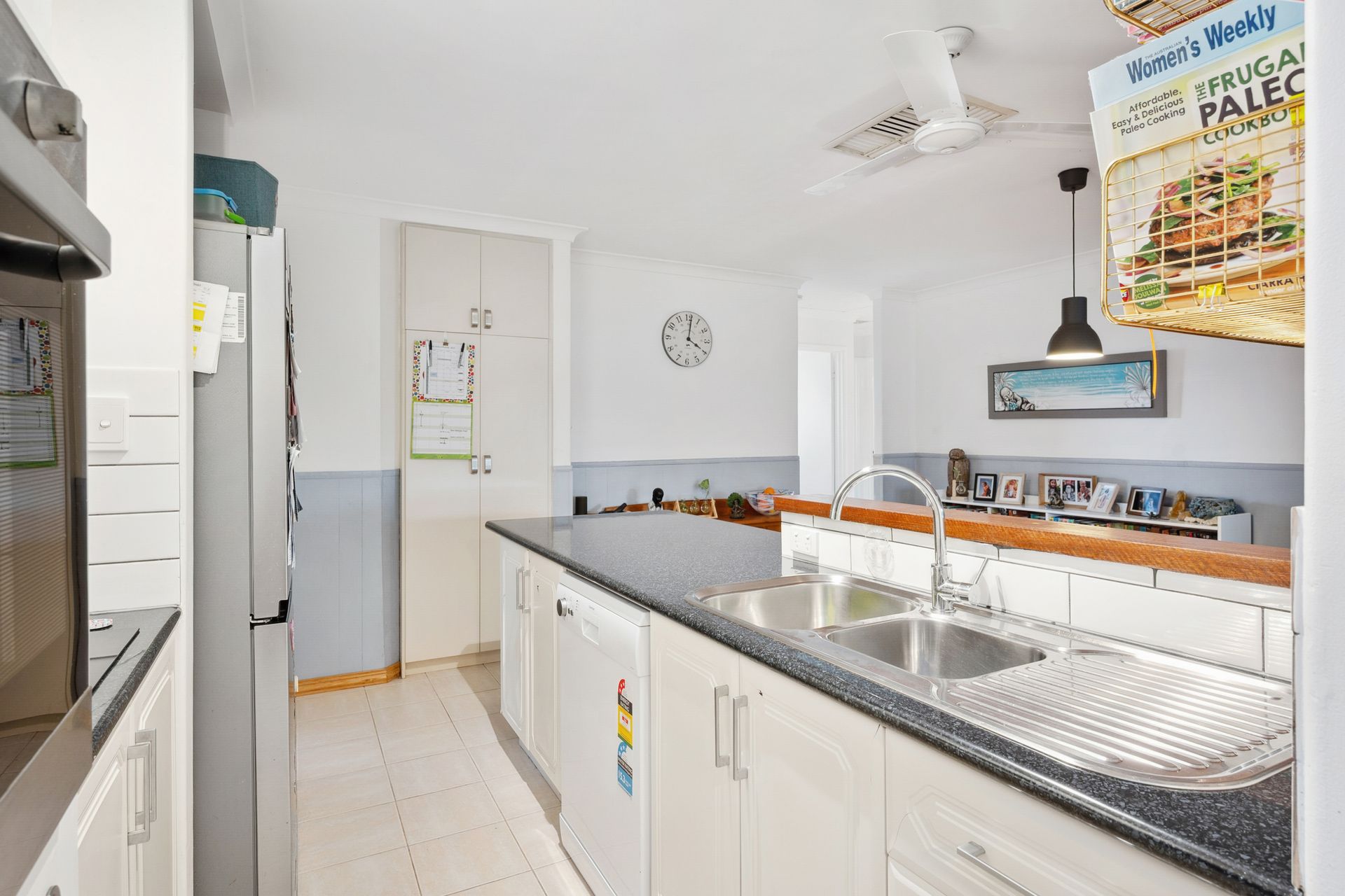 Inside, the home features a sunken lounge at the front, creating a cosy retreat, while the large living area at the rear offers flexibility as a home theatre, games room, or second family space. The kitchen and dining area flow seamlessly out to the patio, making it a great hub for entertaining. The kitchen itself is equipped with ample cupboard and bench space, a good-sized fridge recess, and a breakfast bar for casual meals. A study nook adds further convenience for work or study from home.