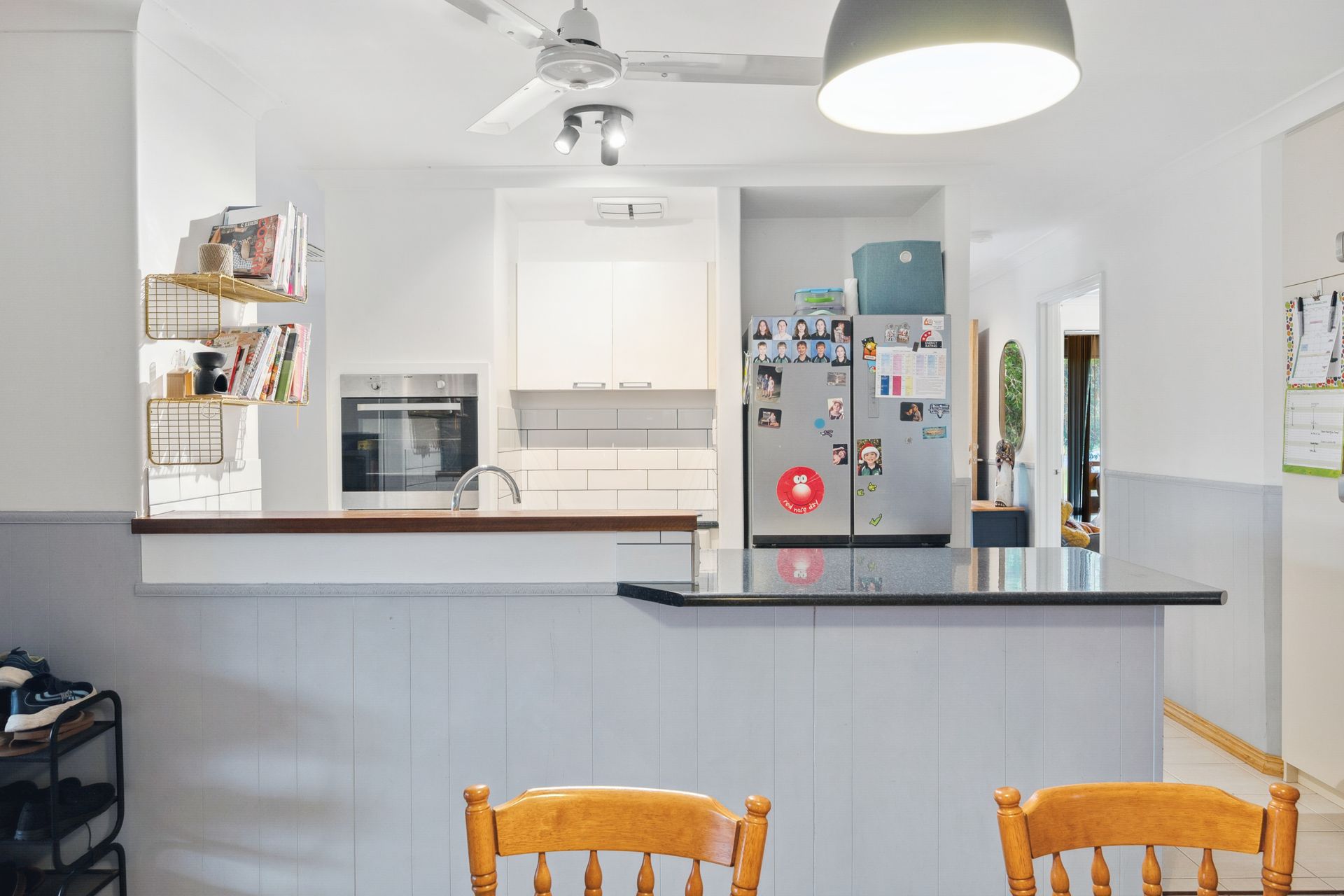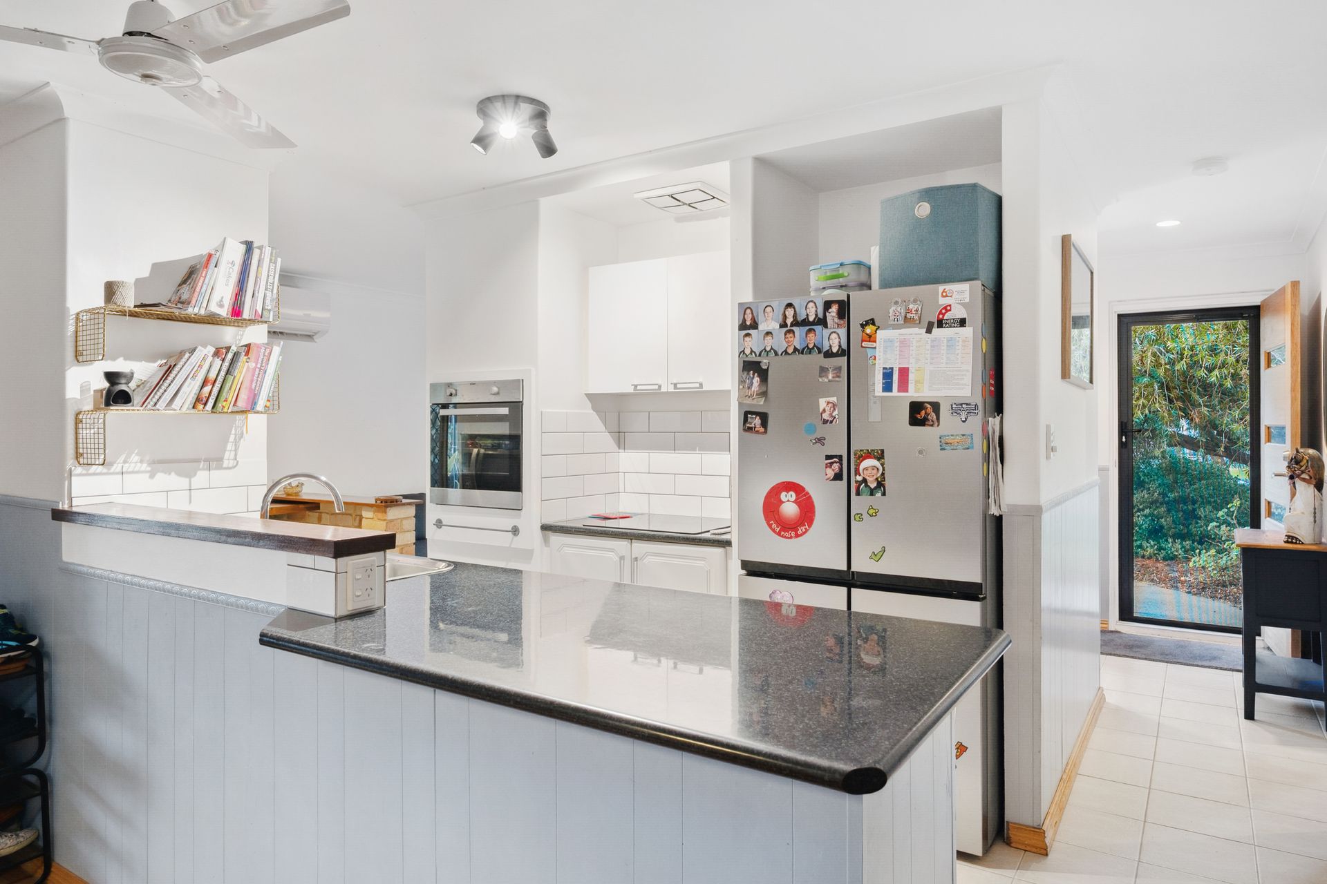 Kitchen with breakfast bar, ample storage, and good fridge recess