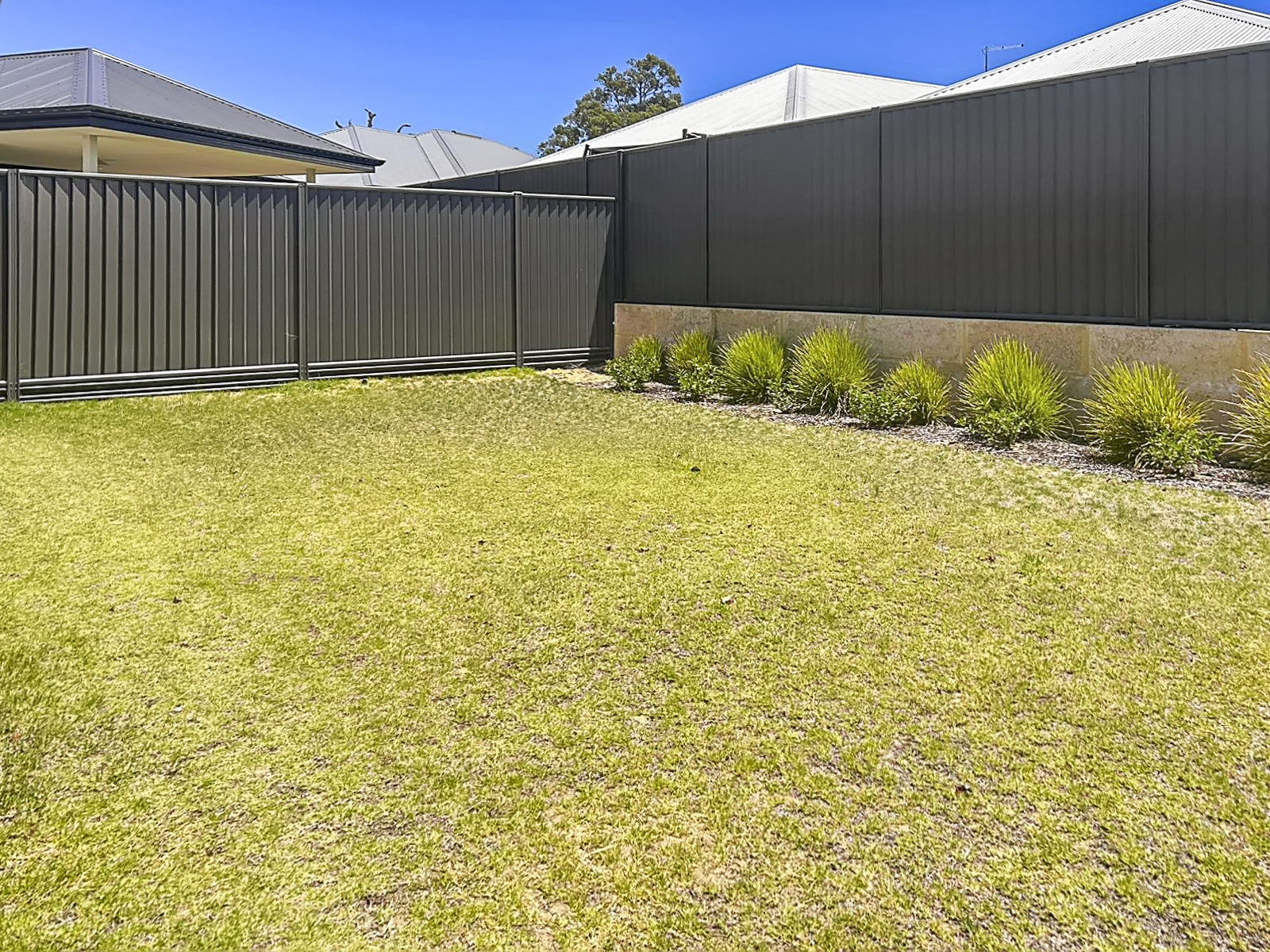– Neat, low-maintenance backyard with lawn, garden beds, and Colorbond fencing