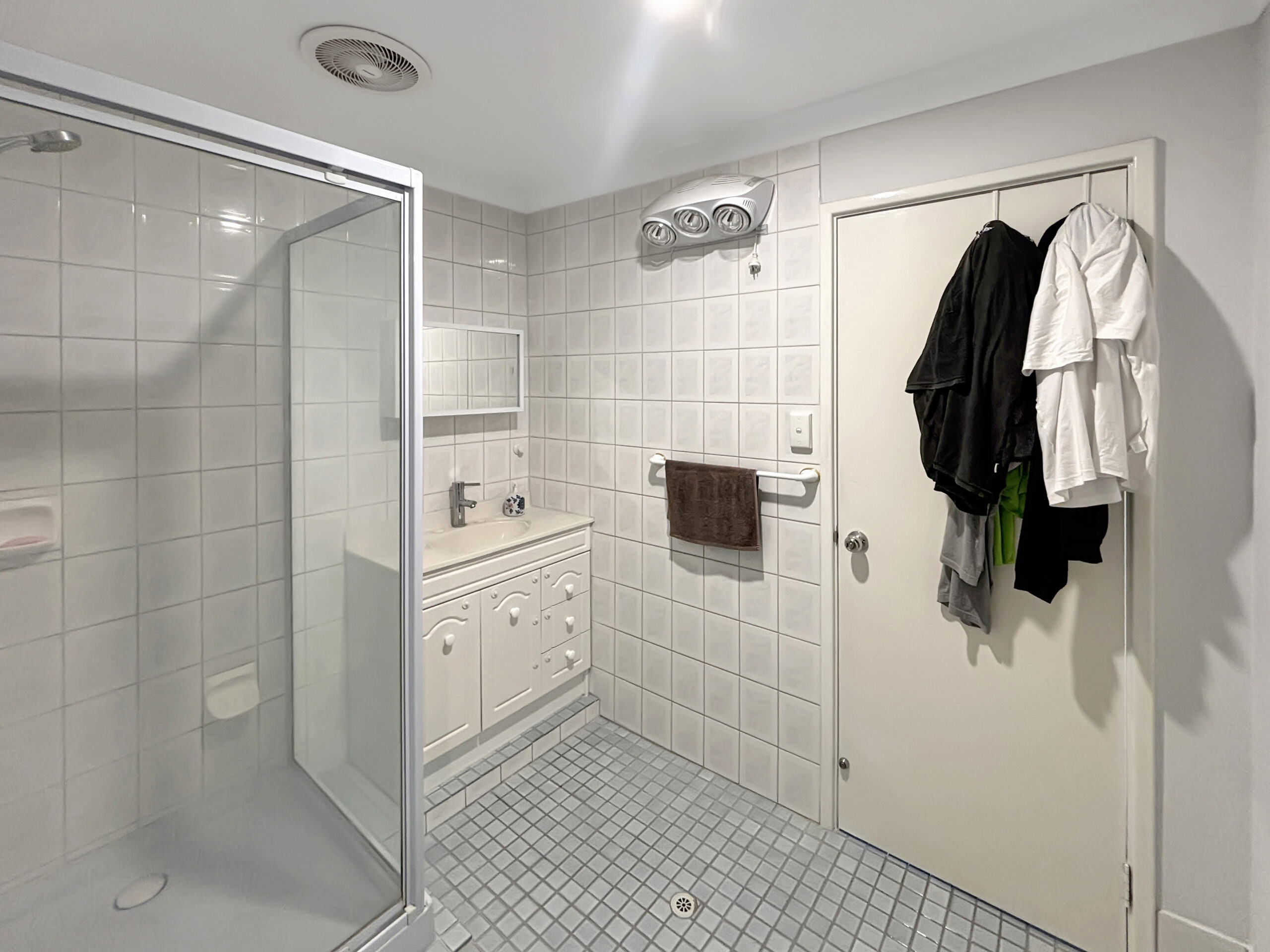 The main bathroom is centrally located and includes both a bathtub and separate shower, along with good storage within the vanity.