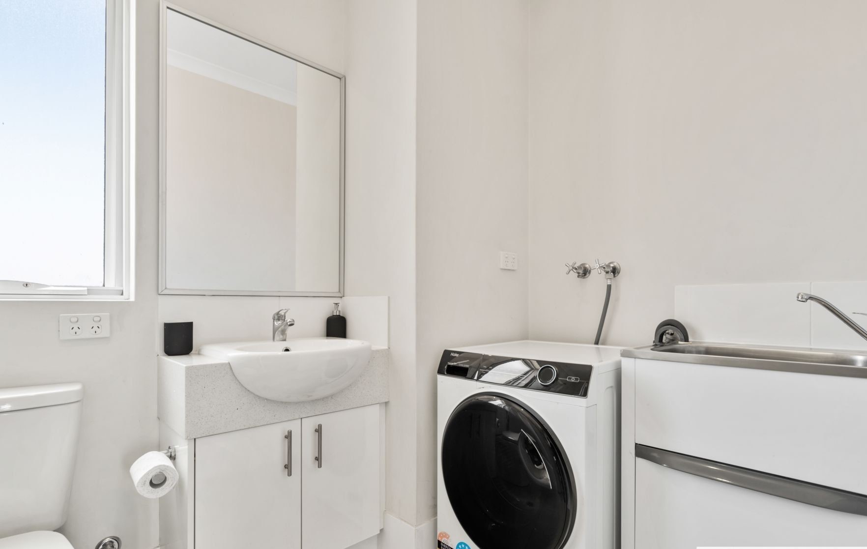 Functional Bathroom/Laundry: A clever dual-purpose bathroom and laundry design maximize space and practicality, complete with modern finishes and fixtures.