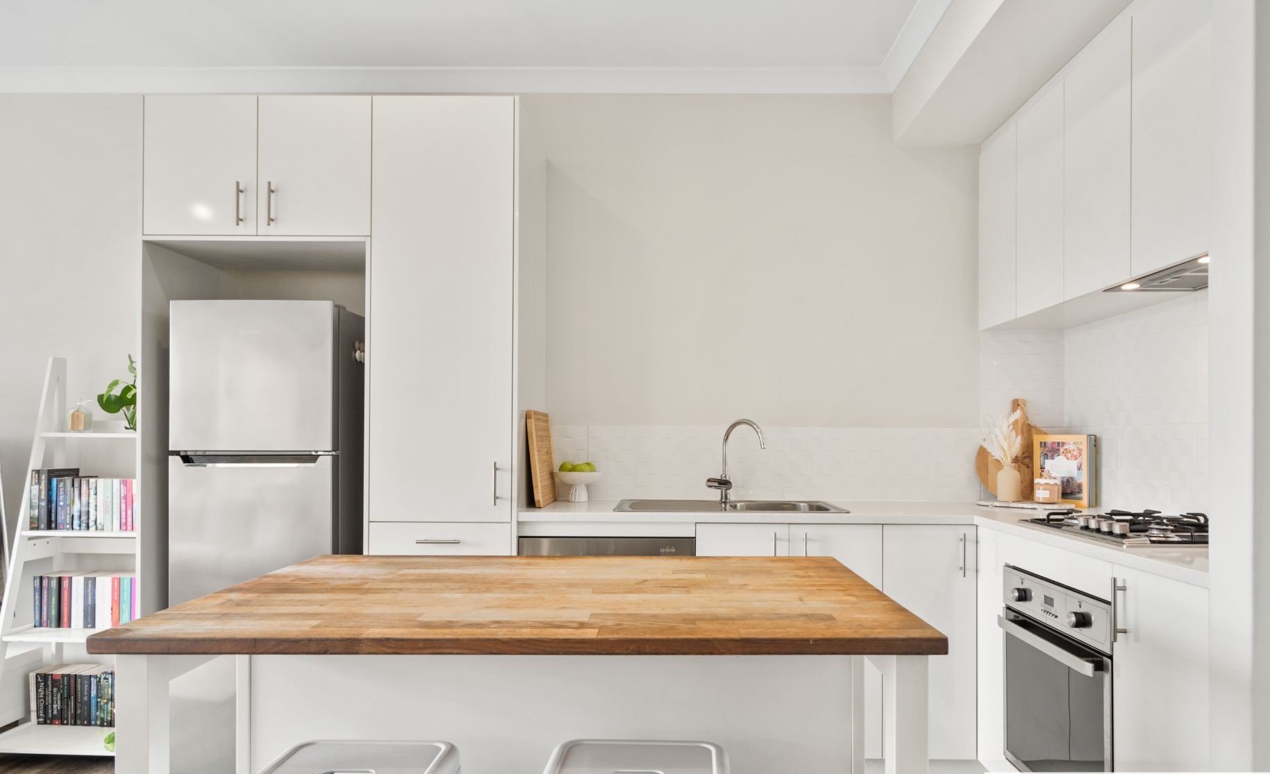 Contemporary Kitchen: The kitchen shines with a built-in pantry for organized storage, quality stainless steel appliances, and a practical island bench that doubles as a breakfast bar. Perfectly designed for the home cook or quick meals on the go.