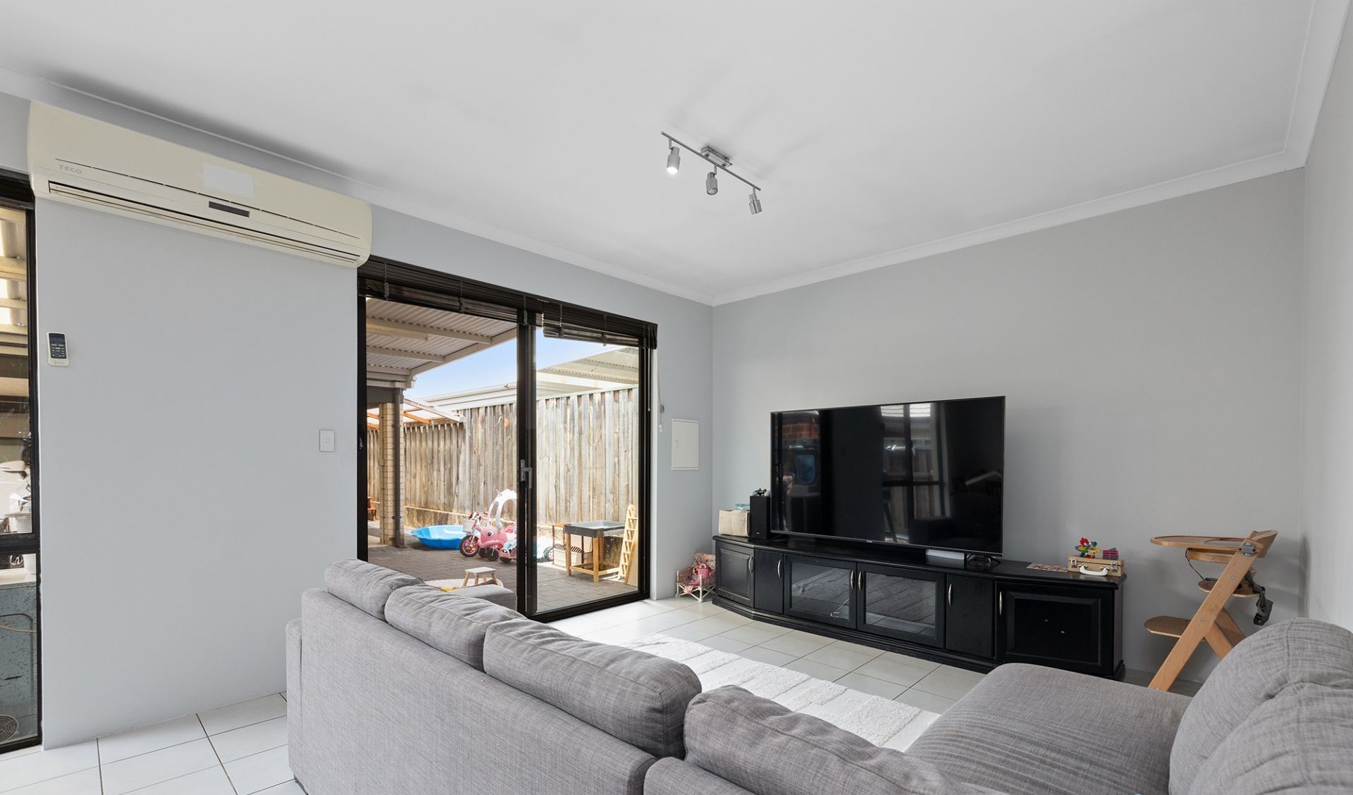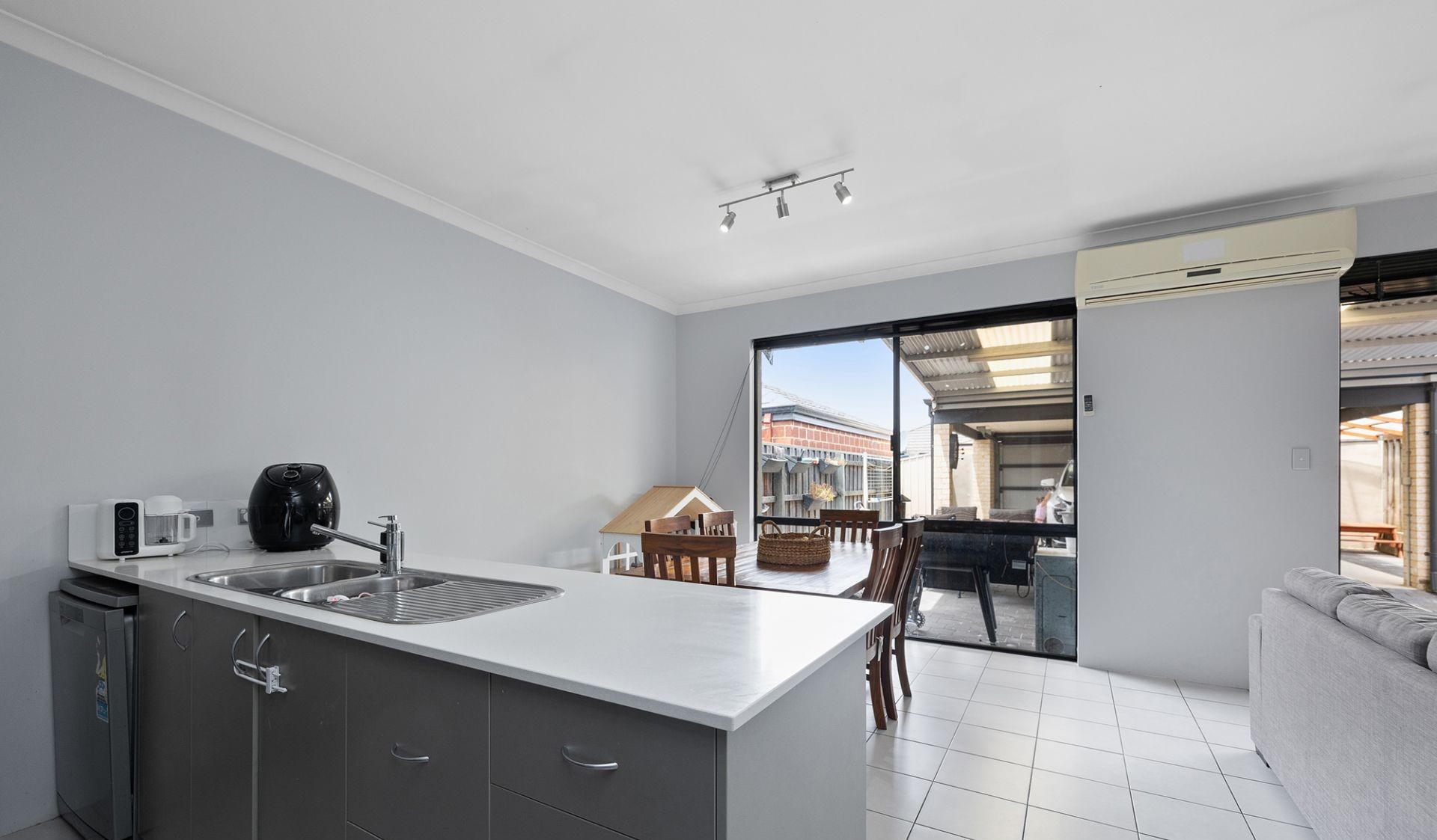 This spacious open-plan kitchen, lounge, and dining area offers a seamless flow for relaxed entertaining, family time, and easy living with a fully equipped kitchen, large split system and easy access to the outdoor area.