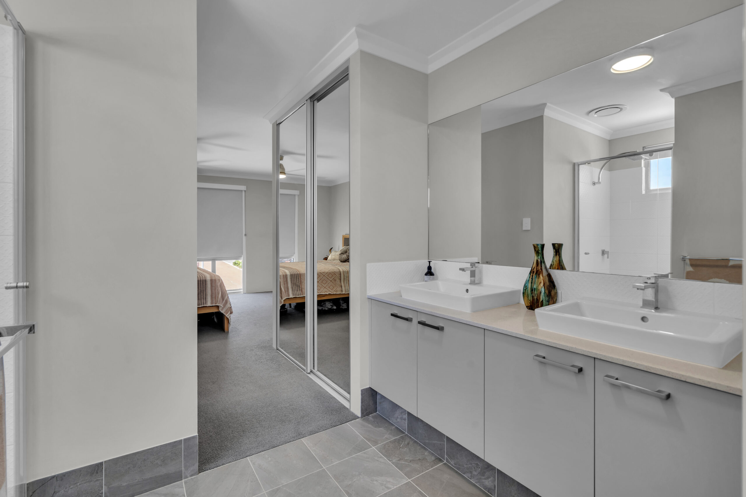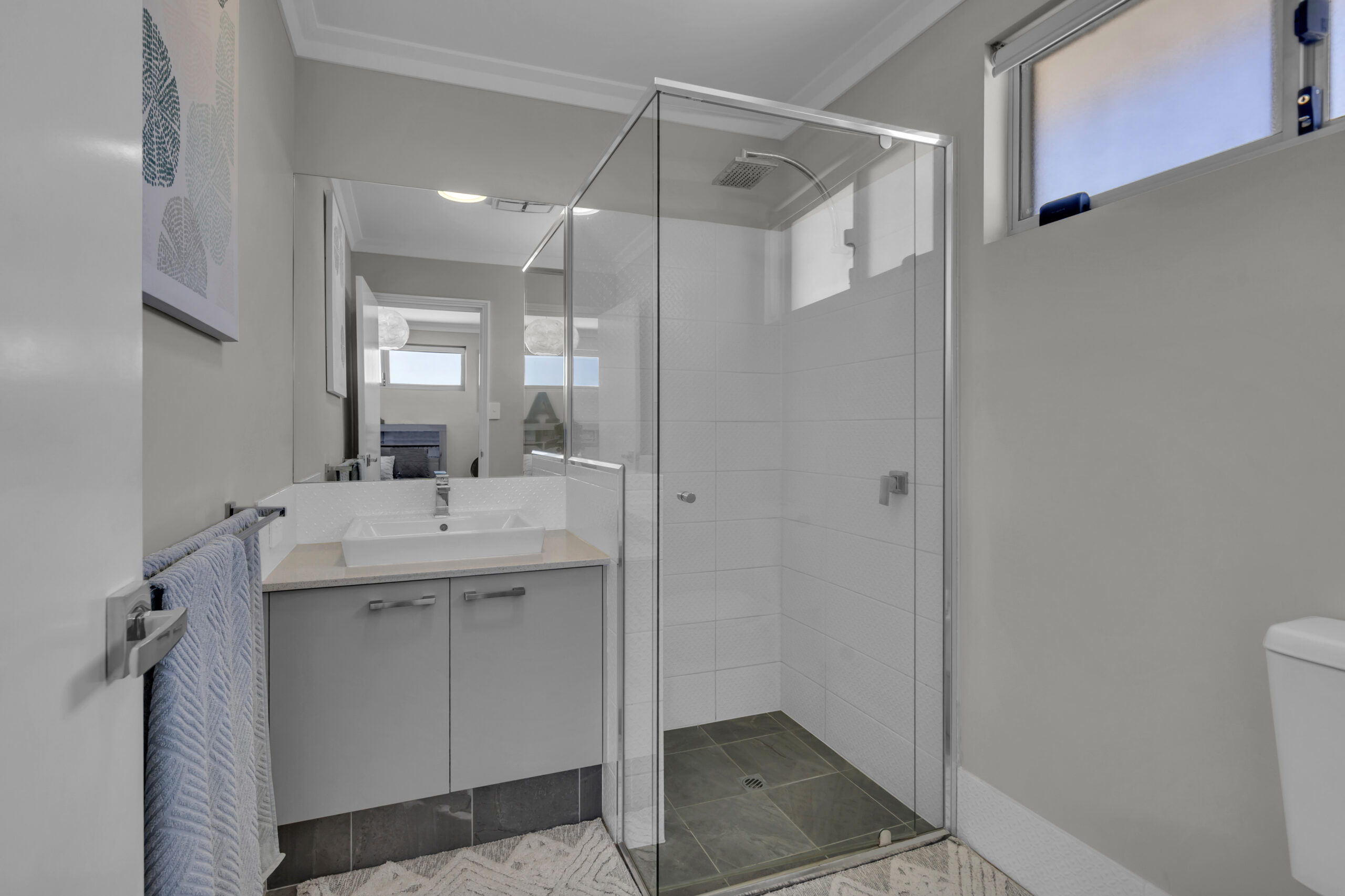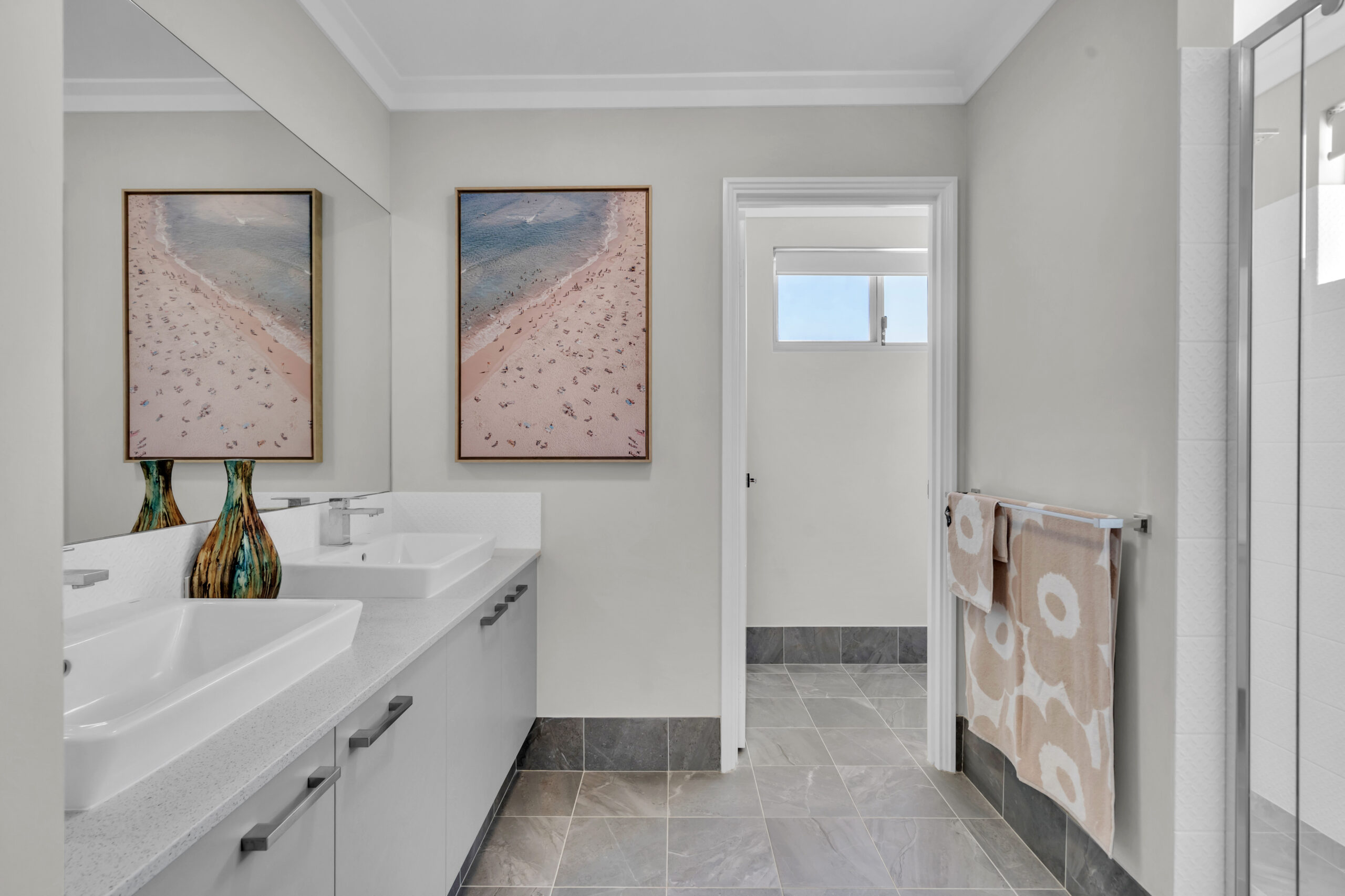 Downstairs, you are welcomed by an impressive entryway that sets the tone for the rest of the home. Two well-sized minor bedrooms (Bedrooms 2 & 3), both complete with built-in robes, are ideally positioned and serviced by a central main bathroom featuring a full-size bath, separate shower, vanity, and a separate toilet/powder room for added convenience.